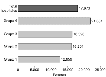 Figura 3.--Coste por UCH en los distintos grupos dehospitales.