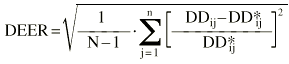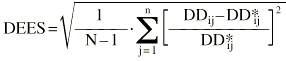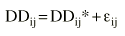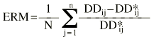 Ecuación 1donde DDij es la dosis diaria administrada al paciente j-ésimo el día j-ésimo, DDij* es la dosis diaria estimada por el modelo en el paciente i-ésimo el día j-ésimo, y