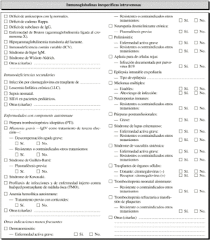 Las indicaciones de IgIV incluidas en la tercera categoría representan el 6% (n = l0) de las prescripciones. Normalmente son patologías en las que no existen estudios controlados y bien diseñados, por lo que no se recomienda su uso, pero en la mayoría de los casos se trata de pacientes refractarios a los tratamientos convencionales.