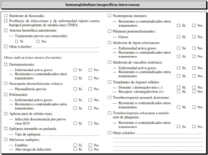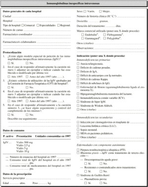 Inmunoglobulinas inespecíficas. Indicaciones. Hospitales españoles. Utilización. Prescripciones. Consumo. Protocolización. Dosificación.