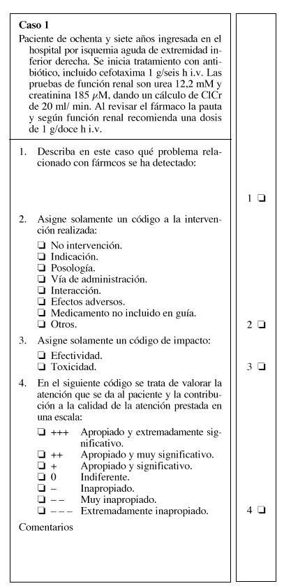 Para llevar acabo esta validación se seleccionaron aleatoriamente 15intervenciones de las realizadas y codificadas, para su posteriorrecodificación por diferentes farmacéuticos dehospital (Fig. 1) utilizando lasdescripciones de los códigos previamente descritos. Con ellose pretendía estudiar la capacidad de estametodología para dar medidas consistentes.