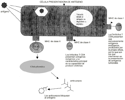 Las células T reconocen antígenos proteicos, después de que estos se hayan degradado a péptidos que se unen a las moléculas del complejo mayor de histocompatibilidad, siendo entonces transportadas a la superficie de células tumorales. Las células tumorales, sin embargo, pueden ser defectivas en la expresión del HLA-I o HLA-II, produciéndose así una presentación de antígeno defectuosa. Además, hay moléculas coestimulantes como B7-1 y B7-2 que pueden ser necesarias para la inducción efectiva de la respuesta inmune frente a tumores. Las células tumorales también pueden tener un defecto en la expresión de dichas moléculas. Por lo tanto, restableciendo la expresión de dichas moléculas puede aumentar la inmunogenicidad de las células tumorales (9).