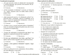 Después, en la segunda parte, el farmacéutico observaba la realización práctica de la técnica por parte del paciente y recogía los datos basándose en los mismos pasos, aunque de una forma más detallada para facilitar la recogida de datos y posterior evaluación de los mismos (tabla 2).