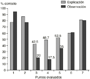 En muchos casos el paciente describe bien la técnica, pero la realizan mal. El hecho de incluir en el análisis de los resultados la comparación entre lo que explica el paciente y lo que realmente hace nos permite poner de manifiesto la importancia de la evaluación y educación de una forma práctica y no sólo teórica.